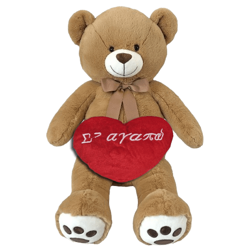 Μεγάλος απαλός αρκούδος με καρδιά κεντημένη με τη λέξη Σ’ αγαπώ. Για υπέροχες αγκαλιές, ο αρκούδος είναι το καλύτερο δώρο για να δείξετε το μέγεθος της αγάπς και της τρυφερότητάς σας.