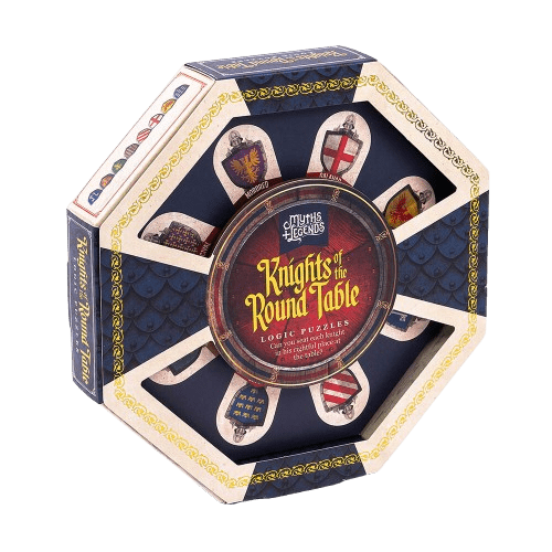 Ο βασιλιάς Αρθρούρος και οι ιππότες της Στρογγυλής Τραπέζης σε απίθανη συσκευασία γρίφων! Λύστε τα λογικά παζλ χρησιμοποιώντας τα στοιχεία για να βρείτε τη σωστή θέση για κάθε ιππότη γύρω από το ξύλινο τραπέζι. Το σετ περιέχει  ξύλινο τραπέζι, 8 κάρτες ιπποτών, 4 τραπεζομάντιλα διπλής όψης, 8 λογικά παζλ με λύσεις.
