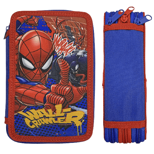Η κασετίνα με τον αγαπημένο ήρωα των παιδιών Σπάιντερμαν διακρίνεται για τον πρωτότυπο σχεδιασμό της, την αντοχή της στις… σχολικές αταξίες αλλά και για το περιεχόμενό της: στυλό, μολύβια, χάρακας,ξύστρα,ψαλιδάκι και φυσικά μαρκαδόρους. Είναι τριπλή, με τρία φερμουάρ και διακρίνεται για τη χωρητικότητά της. Διαστάσεις 19.5 x 12.5 x 7 εκ.