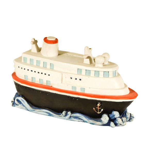 Κουμπαράς πλοίο. Η αποταμίευση γίνεται διασκέδαση με τον κουμπαρά σε σχήμα πλοίου και μάλιστα κρουαζιερόπλοιου. Διαθέτει άνοιγμα που κλείνει με πλαστικό πώμα στη βάση του. Διαστάσεις 23 × 23× 11 εκ.