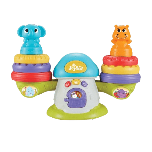 Τραμπάλα με ελεφαντάκι και ιπποποταμακι. Με μουσική και φως είναι το ιδανικό βρεφικό διαδραστικό παιχνίδι. Είναι ειδικά σχεδιασμένο για να προσφέρει ατελείωτη διασκέδαση και να συμβάλει στην ανάπτυξη οπτικοακουστικών και κινητικών δεξιοτήτων. Ένα παιχνίδι διασκεδαστικό, μελωδικό και εκπαιδευτικό!