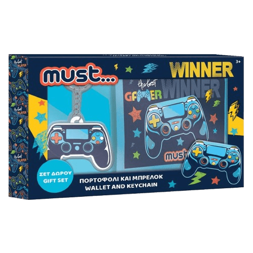 Ένα απίθανο σετ δώρου με πορτοφόλι  με σχέδιο χειριστήριο κονσόλας και ασορτί μπρελόκ, ιδανικό για να να το έχουν όλοι μαζί τους κάθε ώρα. Το Πορτοφόλι σετ Gamer προσφέρεται σε κουτί δώρου.