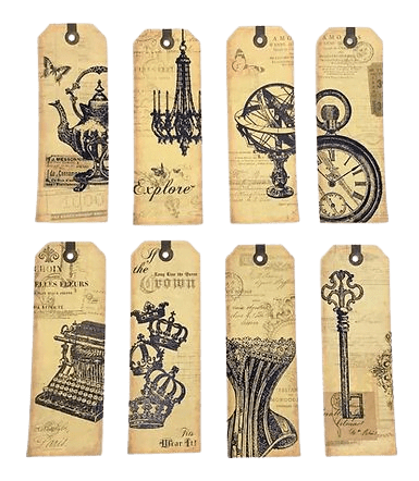 Σετ με οκτώ σελιδοδείκτες με μοτίβα από vintage συλλεκτικά αντικείμενα. Τα σχέδια που έχουν οι σελιδοδείκτες ρετρό προέρχονται από παλιές διαφημιστικές καταχωρήσεις. Είναι φτιαγμένοι από χοντρό, εύκαμπτο χαρτόνι, ανακυκλώσιμο και οικολογικό. Κάθε σελιδοδείκτης έχει διαφορετικό σχέδιο.