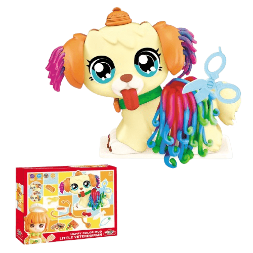 Ένα υπέροχο και πρωτότυπο σετ με πλαστελίνες που θα εξάψει τη φαντασία των παιδιών και θα ανατύξει τη δημιουργικότητά τους. Πρόκειται για ένα σετ μαγικής ζύμης που επιτρέπει στα παιδιά να παίξουν τον κτηνίατρο και παράλληλα να φροντίσουν το τρίχωμα του σχαριτωμένου κατοικιδίου, ένα απίθανο σκυλάκι, το οποίο είναι από πλαστελίνη. Περιέχει πολλά έξτρα αξεσουάρ, όπως ψαλιδάκι και στηθοσκόπιο, αλλά και πολλά άλλα!
