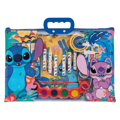 Πάρτε μαζί σας τη μαγεία της Disney όπου κι αν πάτε! Αυτό το πρακτικό σετ ζωγραφικής με τον αγαπημένο Stitch έρχεται σε μια βολική διάφανη τσάντα, ιδανική για να συνοδεύει τους μικρούς καλλιτέχνες στις βόλτες, στο αυτοκίνητο ή τις εκδρομές. Ζωγραφίστε τις έτοιμες σκηνές ή δημιουργήστε τα δικά σας έργα και διακοσμήστε τα με τα απίθανα αυτοκόλλητα που περιλαμβάνονται.