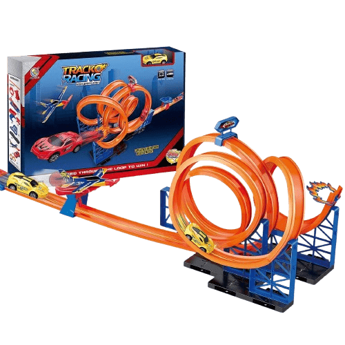Ετοιμαστείτε για υψηλή ταχύτητα και extreme stunts! 🚀 Αυτή η εντυπωσιακή πίστα αγώνων διαθέτει έναν ισχυρό εκτοξευτήρα που στέλνει τα αυτοκίνητα στην κορυφή, όπου πρέπει να ολοκληρώσουν μία τεράστια, κατακόρυφη λούπα!