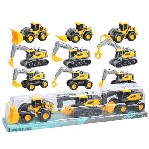 Ολοκληρωμένο σετ που περιλαμβάνει τρία διαφορετικά δομικά οχήματα με μηχανισμό κίνησης friction. Ιδανικό για μικρούς εργοδηγούς, προσφέρει ατελείωτες ώρες παιχνιδιού στο «εργοτάξιο» του παιδικού δωματίου, ενισχύοντας τη φαντασία και τον συντονισμό.