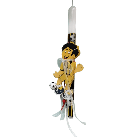 🟡 Πασχαλινή Λαμπάδα με Ξύλινη Μαριονέτα Ποδοσφαιριστή (Κίτρινη Ομάδα)