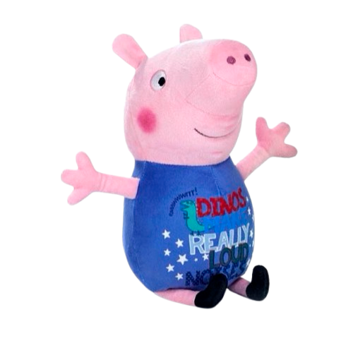 Ο μικρός αδερφός της Πέππα, ο αγαπημένος σε όλους Τζορτζ, είναι εδώ για τις πιο ζεστές αγκαλιές! Αυτό το ποιοτικό λούτρινο κουκλάκι έχει ύψος 30 εκατοστά και απεικονίζει τον Τζορτζ να φοράει το καλό του μπλε ρούχο. Φυσικά, δεν θα μπορούσε να λείπει ο “Κύριος Δεινόσαυρος” από τη στάμπα του, συνοδευόμενος από τη φράση “Dinos Make Really Loud Noises”, δείχνοντας την αγάπη του για τα τρομερά ερπετά.