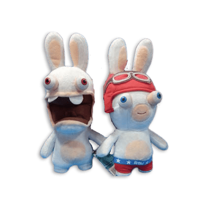 Rabbits λούτρινα. Επώνυμα λούτρινα από την παιδική σειρά Rabbits. Δύο διαφορετικές φιγούρες. Το ένα με ανοιχτό το στόμα και το δεύτερο με στολή εκτόξευσης. Ύψος 30 εκ.