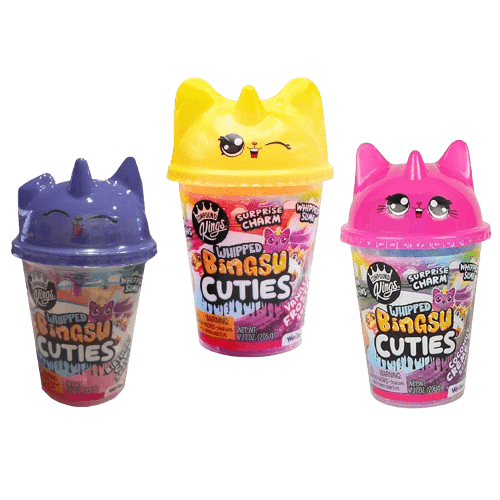 Καταπληκτικά πλαστικά βαζάκια αντοχής  σε σχήμα γατούλας με πολύχρωμα σλάιμ σε τρία διαφορετικά χρώματα. Τα Slime Cuties Bingsu περιέχουν 206 γραμμάρια από εξαιρετικής ποιότητας slime και τα παιδιά μπορούν να παίζουν με απόλυτη ασφάλεια χωρίς να λερώνουν. Περιέχει 1 τυχαία επιλεγμένη φιγούρα Cutie και 5 σακουλάκια με νόστιμο slime για να αναμίξετε και να συνδυάσετε. 2 από τα σακουλάκια περιέχουν μια λευκή βάση που προσφέρει σταθερότητα και τα άλλα 3 περιέχουν slime σε νέον χρώματα με πολλά glitter και χάντρες bingsu!